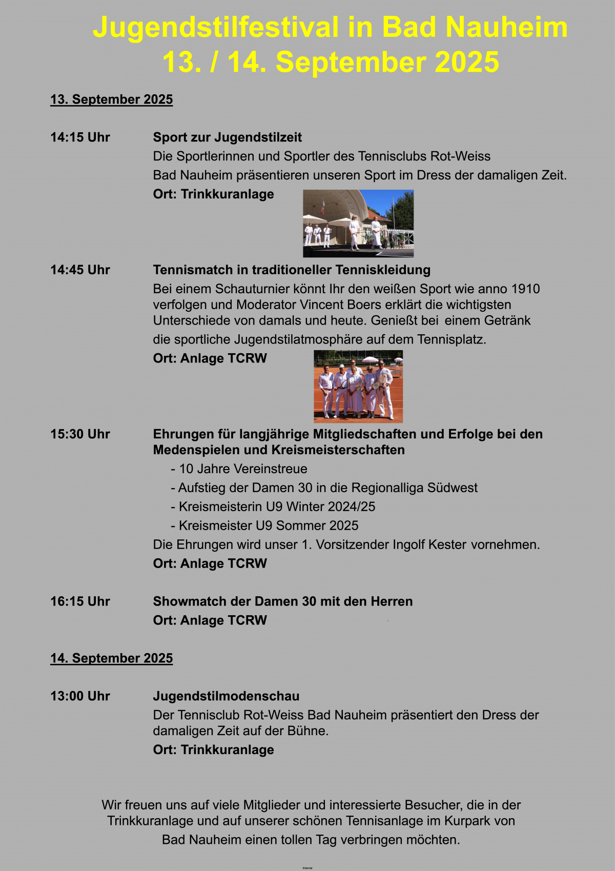 Die Sportlerinnen und Sportler des Tennisclubs Rot-Weiß Bad Nauheim präsentieren unseren Sport im Dress der damaligen Zeit.